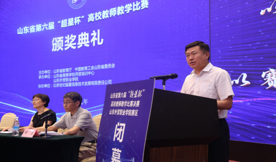 26日下午,举行大赛闭幕式及颁奖典礼。山东省教育厅副厅长关延平,山东省教育厅教师工作处处长刘宝君,雷火竞技官方网站经理刁建东,北京世纪超星信息技术发展有限责任公司总经理阙超,山东省高等学校团队培训中心常务副主任邹文等出席闭幕式并为获奖选手颁奖。评审专家、获奖教师以及部分高校领队参加活动。闭幕式由邹文主持。
